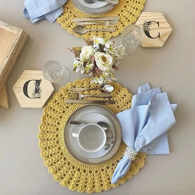 Em vez de comprar sousplats de massa, você pode criar designs únicos para sua mesa. Os sousplats de crochê feitos em casa são duráveis e fáceis de limpar. Eles tornam a decoração mais aconchegante e sustentável.