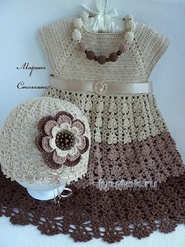 Você pode fazer a cor que quiser, na foto deixei um exemplo de um tom marrom, pode fazer mais de uma cor. Não apenas uma cor para o vestido inteiro. Contudo você também pode torná-lo mais original com algumas flores de crochê, ou, borboletas para torná-lo mais delicado e simples.